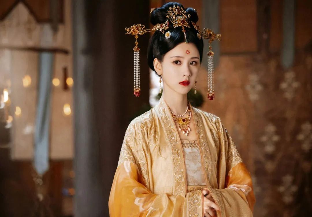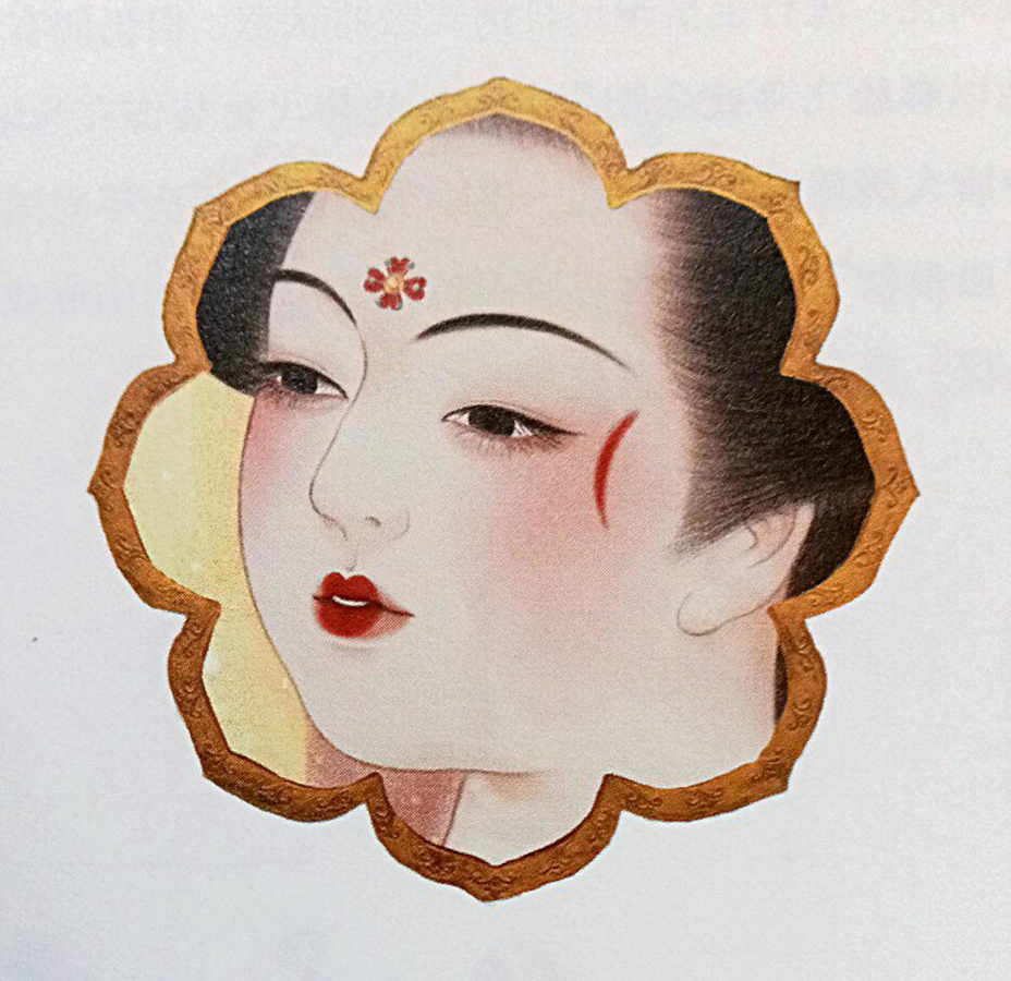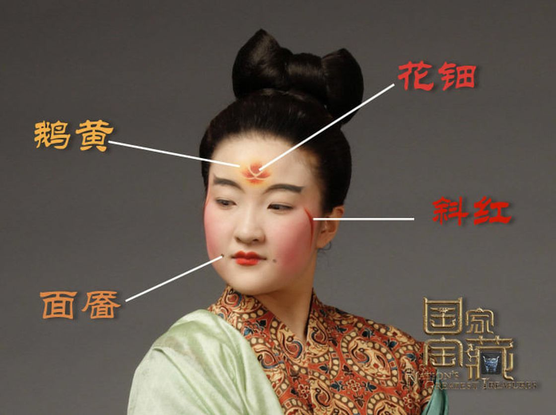 Bên cạnh sắc đỏ rực rỡ, lịch sử còn ghi dấu một lối trang điểm thanh cao mang tên Nga hoàng (鹅黄 /Éhuáng/). Lấy cảm hứng từ những pho tượng Phật thếp vàng đầy uy nghiêm và từ bi, phụ nữ xưa đã dùng bột vàng hoặc giấy vàng để điểm tô lên trán.